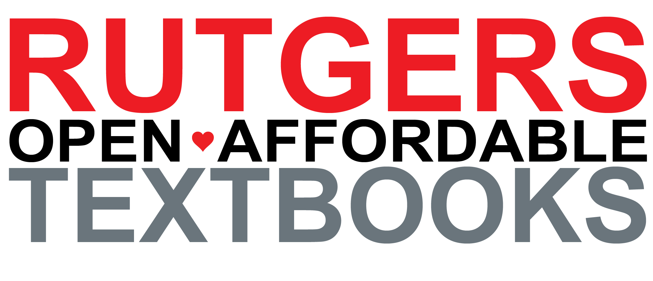 This course has received an ‘Open and Affordable Textbooks Program’ award from the Rutgers University Libraries. The OAT Program supports textbook affordability at Rutgers by encouraging courses to adopt educational materials that are freely available, available at a low cost (compared to similar courses), or part of the Rutgers University Libraries’ electronic collections, and thereby free of charge to Rutgers University students. As a student in this course, you will be asked to provide feedback on this initiative at the end of the semester.